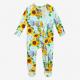 Sunny Ruffled Footie--Bamboo one-piece footie coverall with reversible zipper opening. Sweet ruffle details on bodice and back. New reversible zippers are perfect for late-night changes and the ease of not undressing your peanut. Zip up or down for a quick change. Signature Posh Peanut Footie grips, elastic backing on footies for a snug fit and fold-over mittens in sizes NB and 0-3M. Buttery soft jammies so cute you can wear them out! Soft, stretchy 95% Viscose from Bamboo, 5% Spandex. Sizes 18-24 months only.
